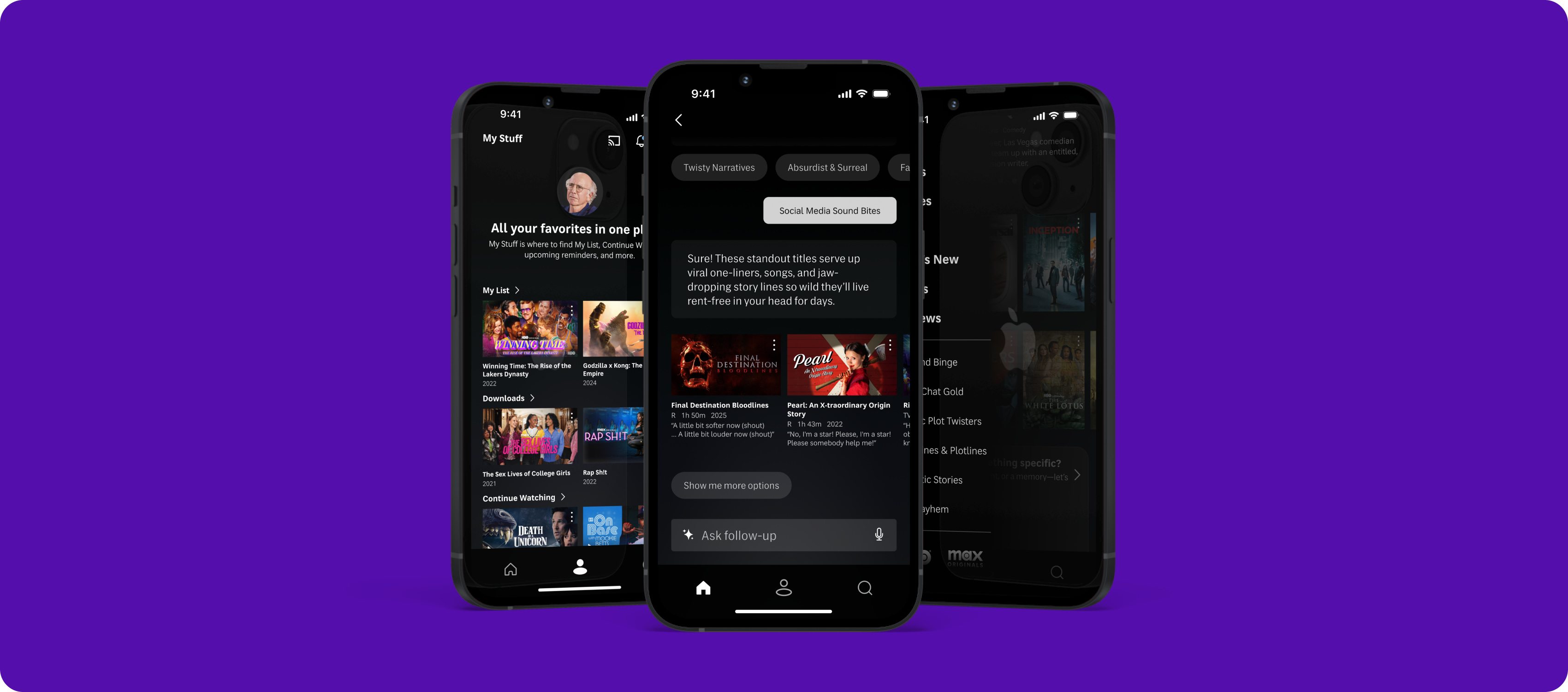 In order to create a better experience for HBOMax users, I wanted to look at how other streaming service competitors offer users ways to explore new content on mobile devices.